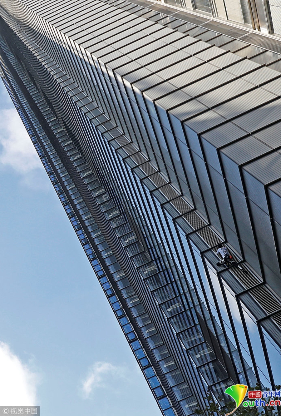 當(dāng)?shù)貢r(shí)間2018年10月25日,英國(guó)倫敦,號(hào)稱“蜘蛛人”的法國(guó)攀樓者阿蘭·羅伯特嘗試攀登高230米的倫敦高樓赫倫大廈。