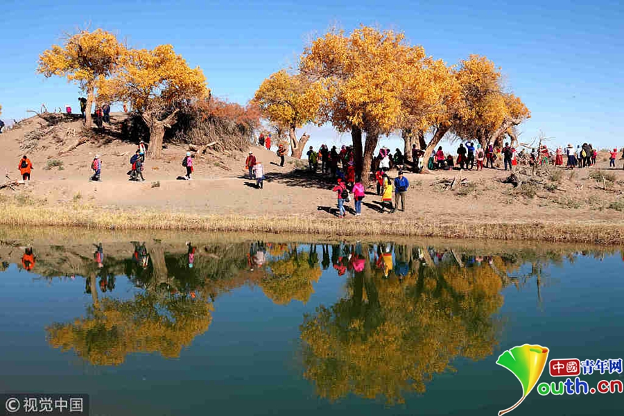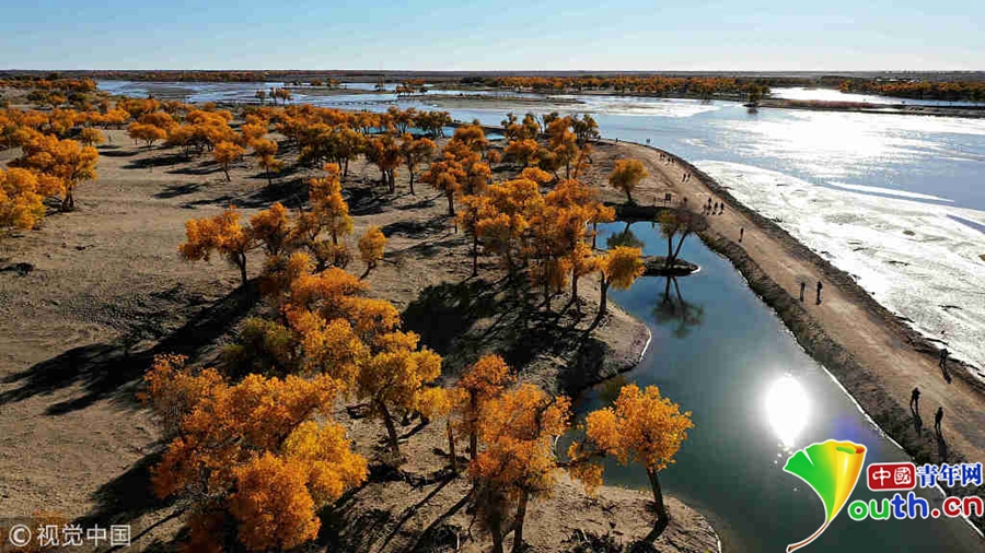 中國青年網(wǎng)北京10月9日電 2018年10月7日至8日,內(nèi)蒙古自治區(qū)阿拉善盟額濟納旗,地處巴丹吉林沙漠。額濟納河兩岸壯觀的胡楊林堪稱大漠的一顆綠色明珠,每年深秋時節(jié)的第一場秋霜過后,大片的胡楊樹葉由綠變黃,一眼望去,陽光下金色的樹葉襯著湛藍的天空于風中婆娑起舞,鮮明的影調(diào),亮麗的色彩,令人流連忘返。