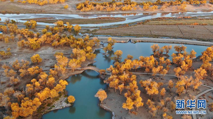 10月中旬以來,新疆天山以南的塔里木河流域胡楊葉片由綠變黃,如同披上了金色外套。 2000年起,塔里木河19次向下游生態(tài)輸水,累計下泄生態(tài)水76.2億立方米。多年的持續(xù)輸水結(jié)束了塔里木河下游河道連續(xù)斷流30年的歷史,緩解了流域生態(tài)退化的被動局面,塔里木河下游動植物物種顯著增加、水環(huán)境得到有效改善。