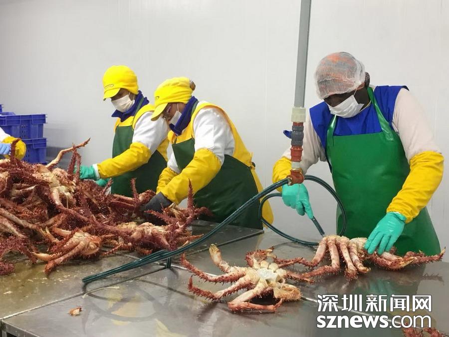 智力蜘蛛蟹加工基地, 產(chǎn)于南極洲海域。  李仁奇 攝