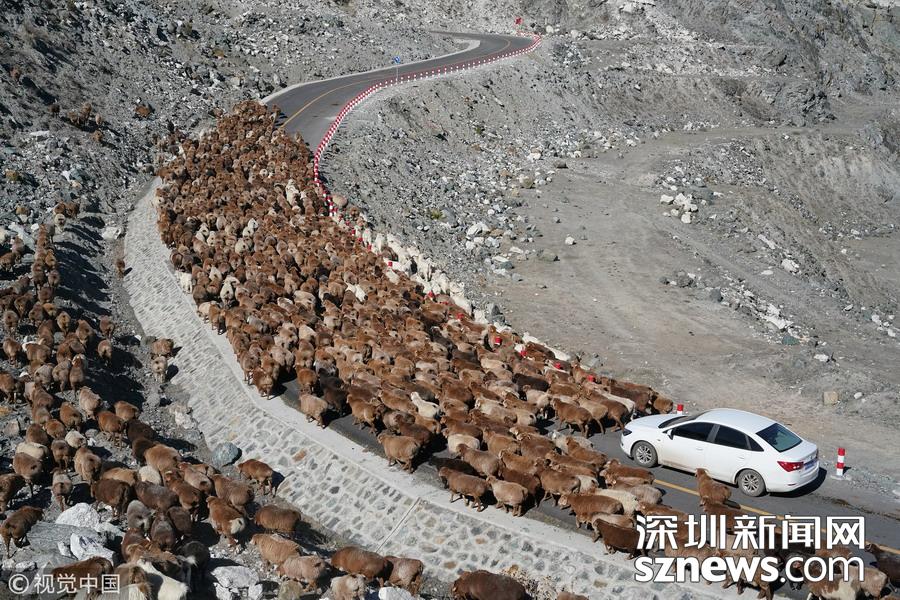 “綿羊大軍”行進(jìn)萬米回農(nóng)場過冬 占據(jù)馬路吞沒車輛