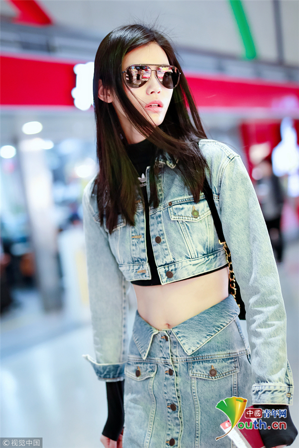 奚夢瑤一身帥氣牛仔裝 露細腰長腿顯好身材