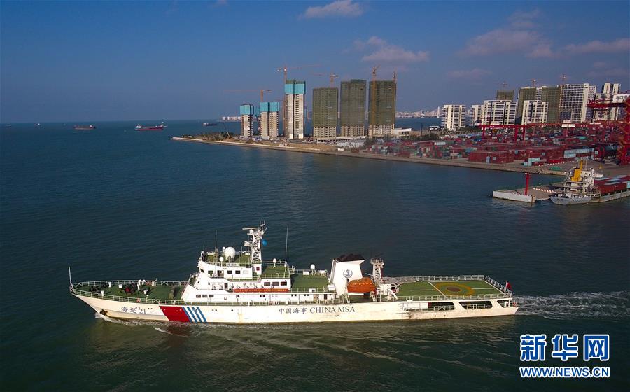 11月3日,“海巡21”輪駛出港口。當日,隨著“海巡21”輪緩緩駛離??诤J卤O(jiān)管基地碼頭,由瓊桂粵海事部門共同開展的瓊州海峽、北部灣及環(huán)海南島水域跨轄區(qū)聯合巡航執(zhí)法活動揭開序幕。新華社記者楊冠宇攝