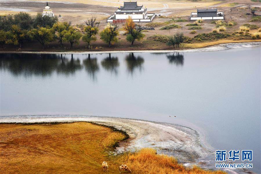 巴丹吉林廟位于名為“廟海子”的湖泊旁(10月19日攝)。巴丹吉林沙漠位于內(nèi)蒙古西部阿拉善盟,是中國第三大沙漠,沙丘起伏的曲線陡變成高聳的沙山,碧藍的湖泊散落在沙海間。新華社記者李仁虎攝