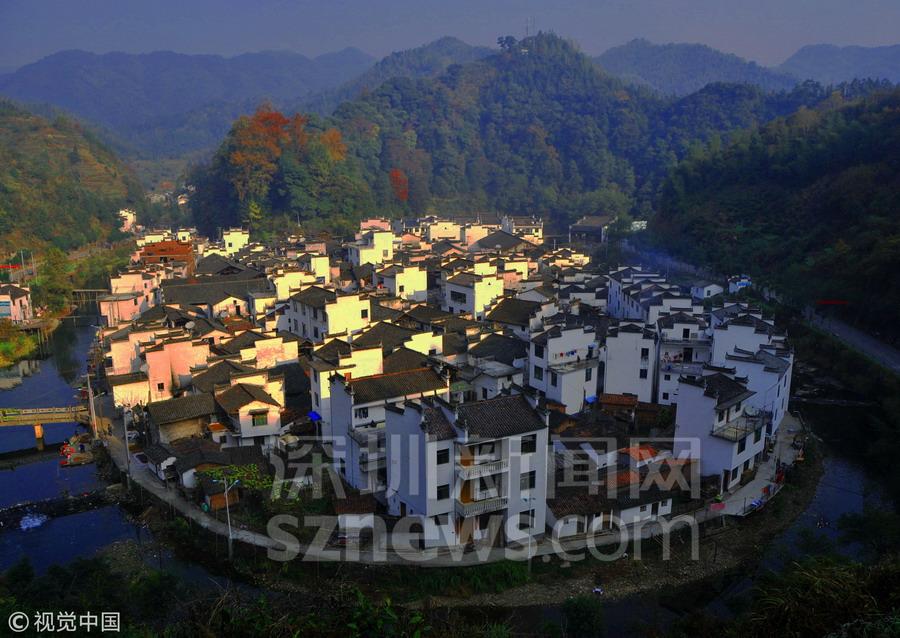 深圳新聞網(wǎng)訊 四面青山環(huán)繞,小河成大半圓形圍繞一周,眼前這個山環(huán)水繞的小村莊被稱為“中國最圓的村莊”,沿山間小路建設(shè)的臺階而上,站在一處觀景臺往下看,這個村子的形狀在山水襯托下,宛如一個圓形的島嶼。