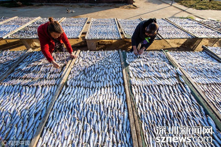 深圳新聞網(wǎng)訊 連日來,秋風(fēng)颯爽,艷陽高照,當(dāng)?shù)貪O村迎來豐收季,漁民們在鄱陽湖畔的漁港岸邊和屋前屋后晾曬魚蝦,忙的不亦樂乎。