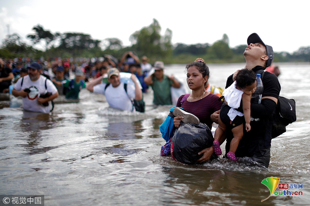 當(dāng)?shù)貢r(shí)間2018年11月2日,墨西哥與危地馬拉邊界,中美洲移民繼續(xù)向美國(guó)挺進(jìn)。圖片作者:CARLOS GARCIA RAWLINS