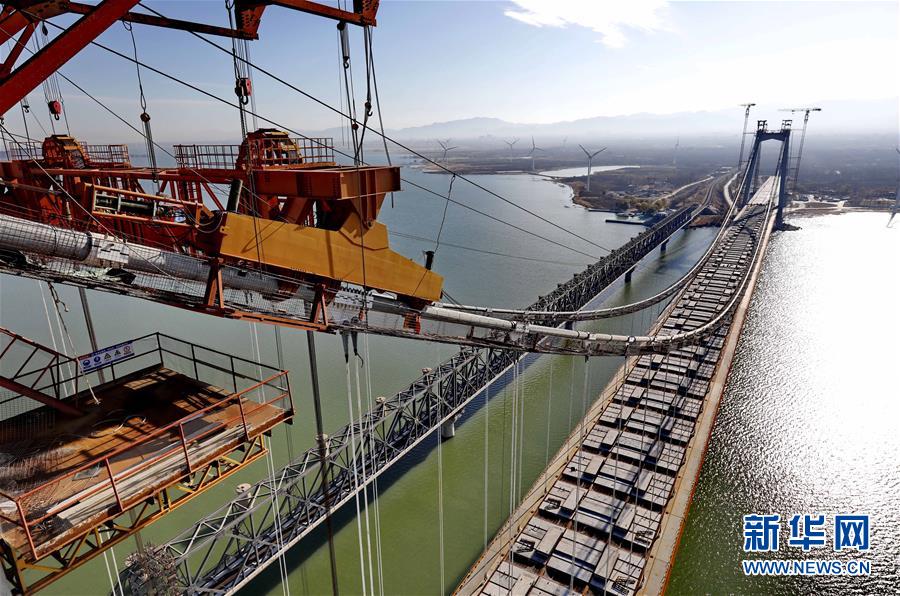 當(dāng)日,河北省懷來(lái)縣官?gòu)d水庫(kù)公路大橋主橋成功合龍。據(jù)介紹,該橋采用雙向四車道城市主干路標(biāo)準(zhǔn)建設(shè),設(shè)計(jì)為雙塔單跨懸索橋,全長(zhǎng)1988米, 橋主塔高107.8米,橋?qū)?3.6米,主橋720米一跨過(guò)湖。