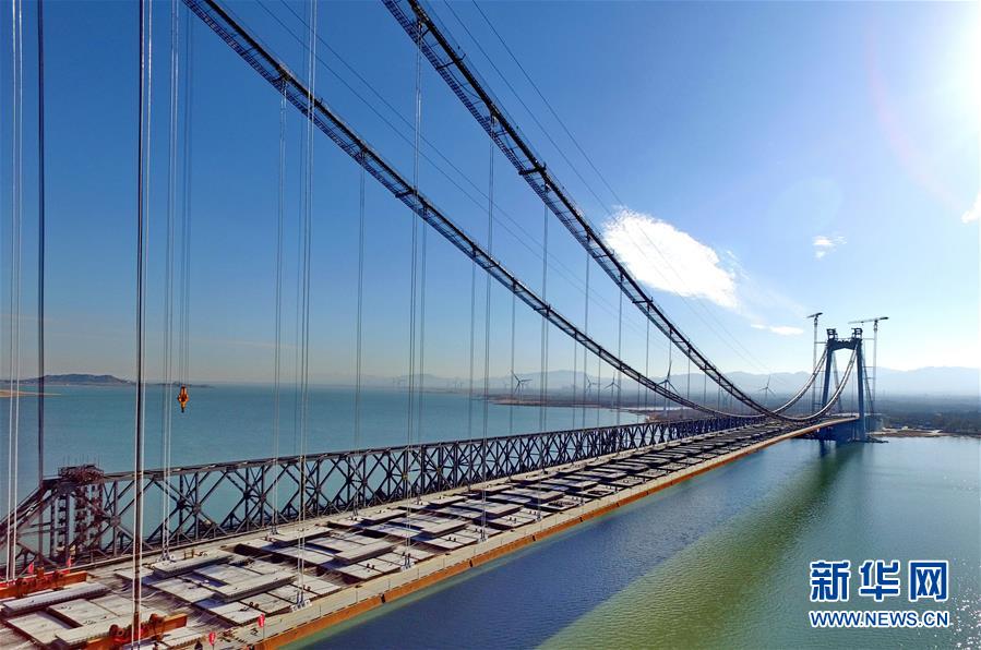 11月3日,工人在進(jìn)行大橋合龍收尾工作。 新華社記者 郭程 攝