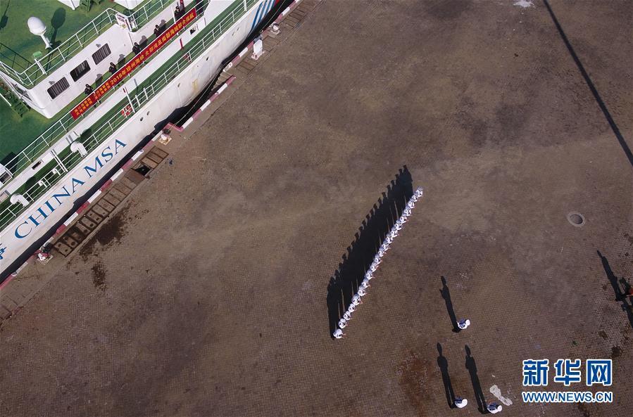 11月3日,海事執(zhí)法人員準備登上“海巡21”輪(無人機拍攝)。 當日,隨著“海巡21”輪緩緩駛離??诤J卤O(jiān)管基地碼頭,由瓊桂粵海事部門共同開展的瓊州海峽、北部灣及環(huán)海南島水域跨轄區(qū)聯(lián)合巡航執(zhí)法活動揭開序幕。 新華社記者楊冠宇攝