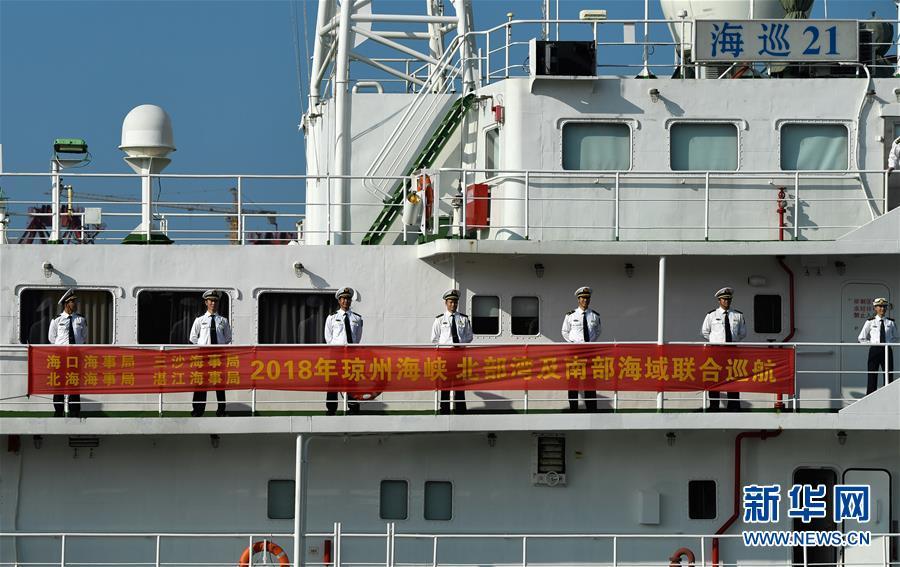 11月3日,海事執(zhí)法人員乘“海巡21”輪出發(fā)。 當(dāng)日,隨著“海巡21”輪緩緩駛離海口海事監(jiān)管基地碼頭,由瓊桂粵海事部門共同開展的瓊州海峽、北部灣及環(huán)海南島水域跨轄區(qū)聯(lián)合巡航執(zhí)法活動揭開序幕。 新華社記者楊冠宇攝