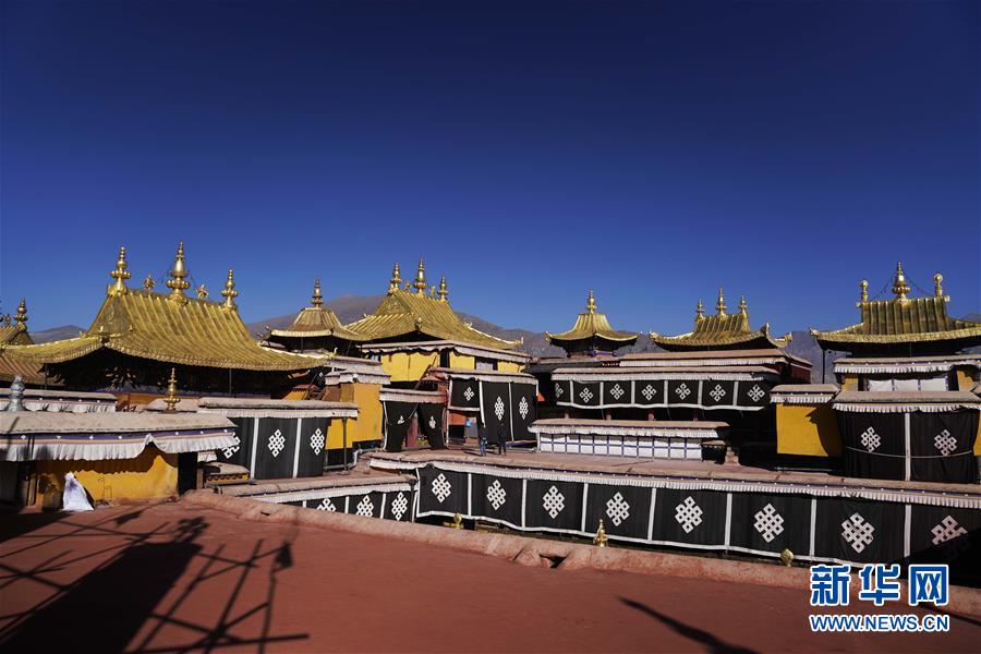 修繕后的布達拉宮金頂群(11月7日攝)。