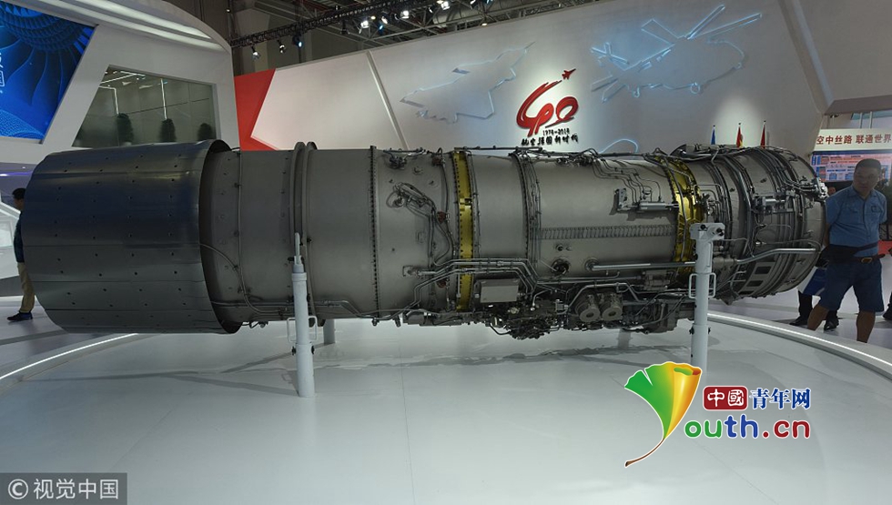 觀眾在觀看國產(chǎn)新型渦扇發(fā)動機“太行發(fā)動機”。