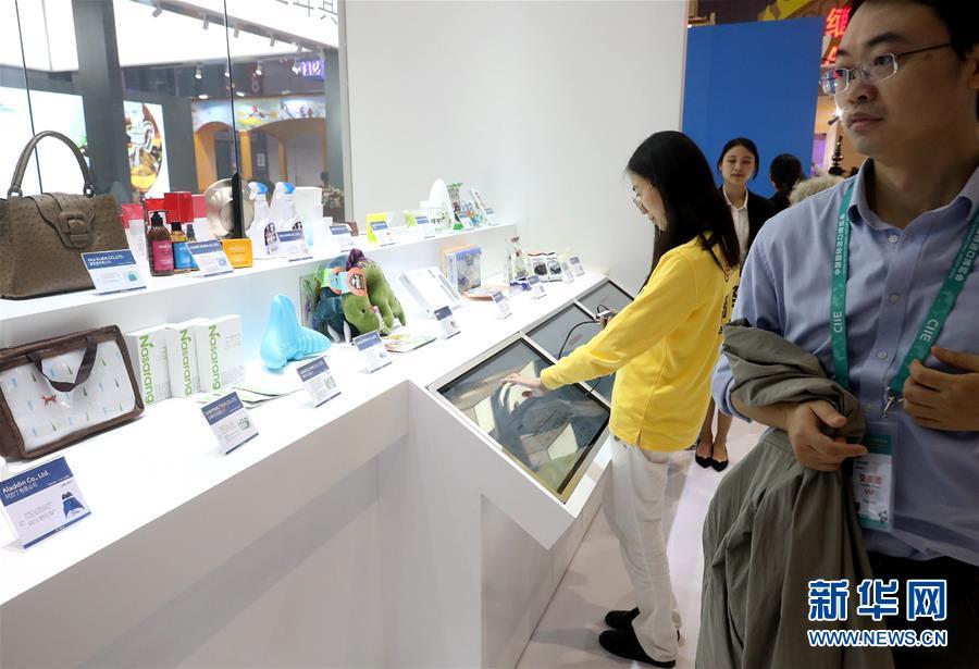 11月7日,人們在尼泊爾展區(qū)參觀。 中國國際進口博覽會11月5日在上海開幕。國家貿(mào)易投資綜合展(國家展)是中國國際進口博覽會的重要內(nèi)容,共有82個國家、3個國際組織設立71個展臺。 新華社記者 陳飛 攝