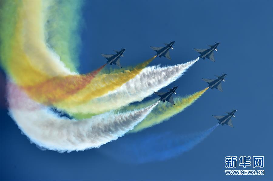 11月6日,中國(guó)空軍八一飛行表演隊(duì)在航展現(xiàn)場(chǎng)進(jìn)行飛行表演。當(dāng)日,第十二屆中國(guó)國(guó)際航空航天博覽會(huì)在珠海開(kāi)幕。 新華社記者鄧華攝