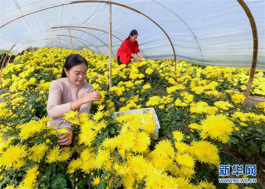 11月7日,河北省魏縣魏城鎮(zhèn)町上村農(nóng)民在菊花種植基地采摘菊花。