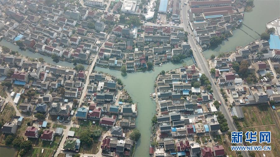 蘇州市吳江區(qū)七都鎮(zhèn)開(kāi)弦弓村村貌(10月23日無(wú)人機(jī)拍攝)。近年來(lái),開(kāi)弦弓村形成了化纖紡織、針織衫編織和水產(chǎn)養(yǎng)殖三大產(chǎn)業(yè),2017年村集體收入268萬(wàn)元,農(nóng)民人均可支配收入3萬(wàn)多元。