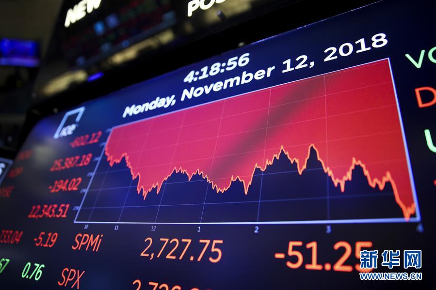 11月12日,美國(guó)紐約證券交易所的電子屏顯示當(dāng)日交易數(shù)據(jù)。 新華社記者 王迎 攝