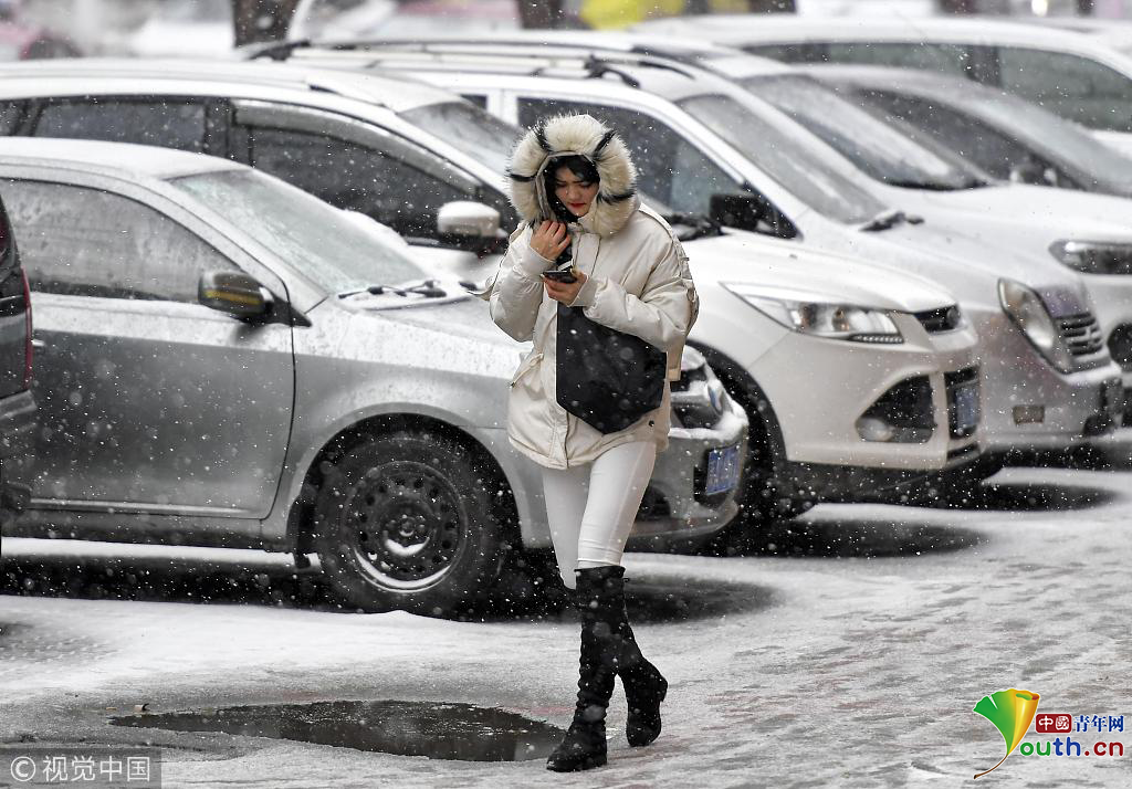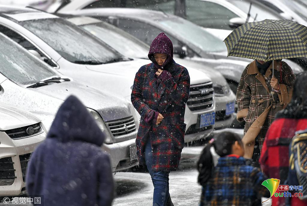 2018年11月12日,持續(xù)濃霧天氣的新疆烏魯木齊市,又迎來一場雨雪天氣,氣溫隨之驟降。圖為在風雪中外出的民眾腳步匆匆。圖片作者:劉新