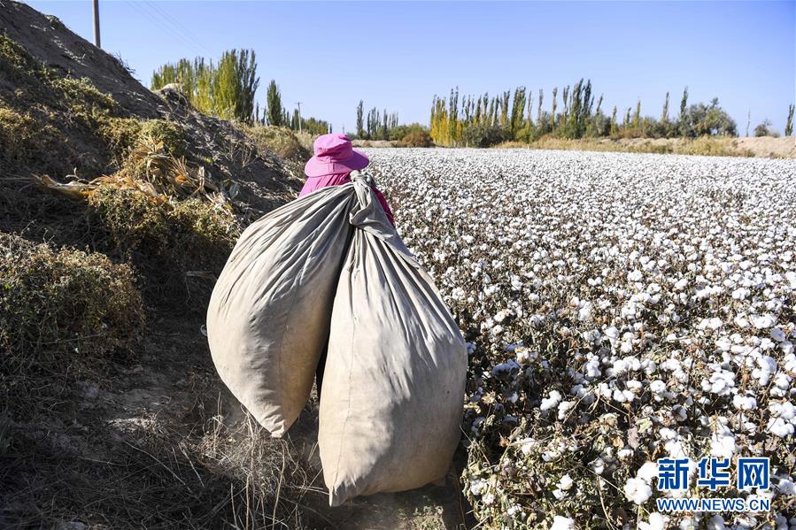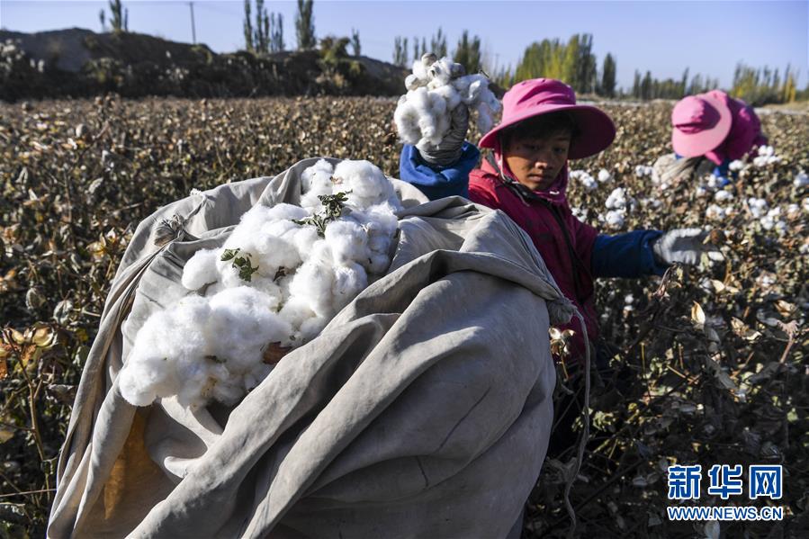 10月21日,棉農(nóng)在棉田采收棉花。目前,河北省南宮市40萬(wàn)畝棉花迎來(lái)采收季。新華社記者朱旭東攝