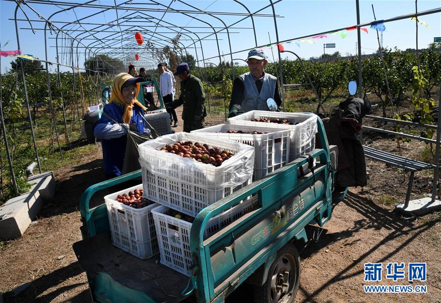 10月17日,在山東省青島市即墨區(qū)藍(lán)村鎮(zhèn)王演莊北村,種植戶在果園里收集采摘的大棗。 金秋時(shí)節(jié),農(nóng)民們忙著收獲成熟的農(nóng)作物,喜迎豐收。 新華社記者 李紫恒攝