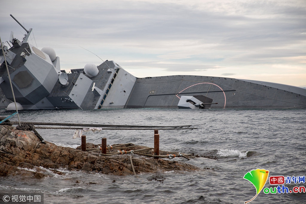 挪威:被撞翻的海軍護(hù)衛(wèi)艦打撈出水