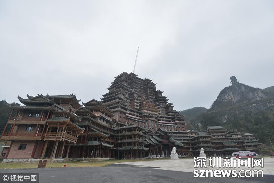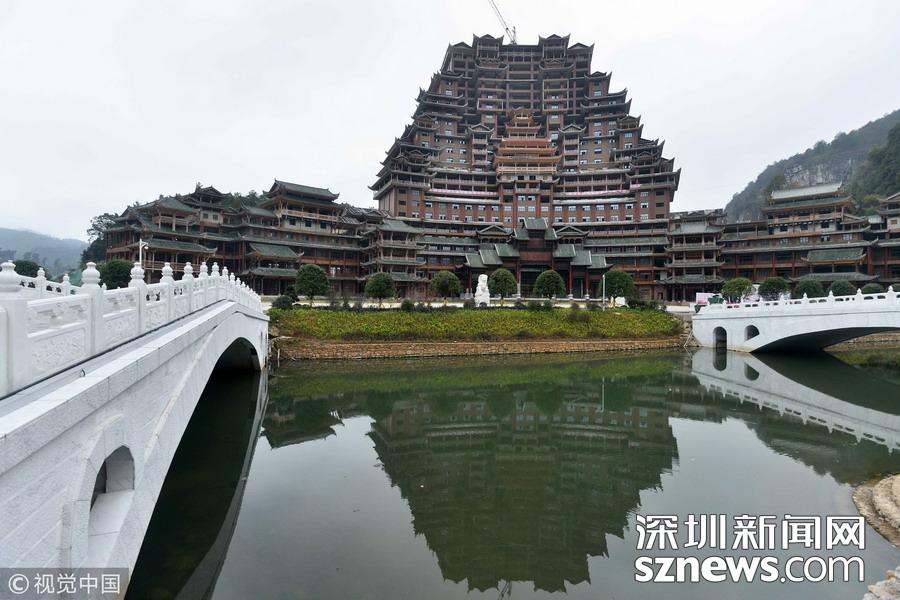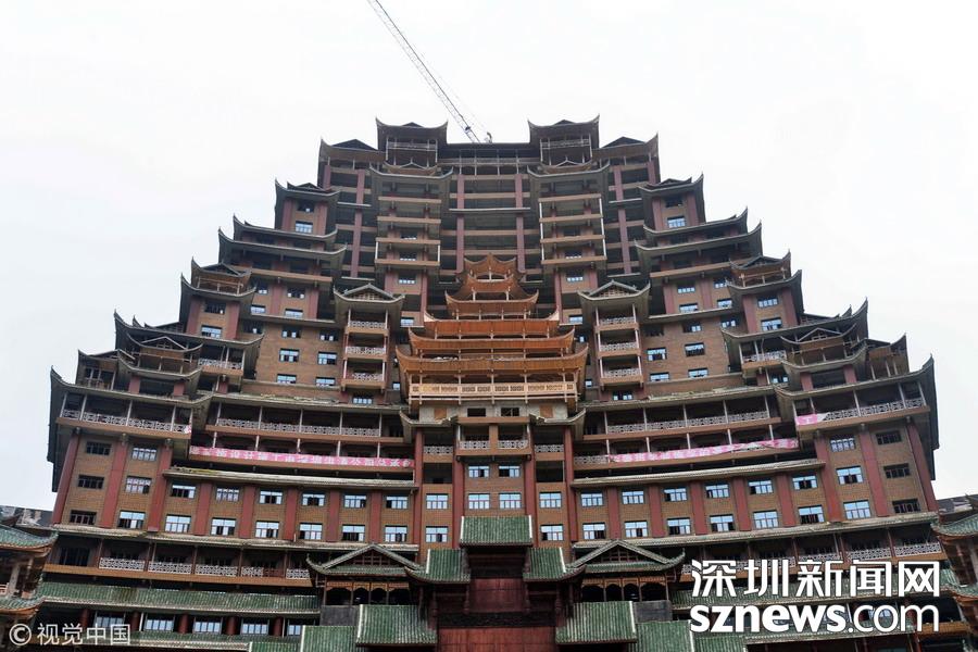 深圳新網(wǎng)網(wǎng)訊 始建于2016年9月的貴州省獨山縣水司樓已進入工程收尾階段。雄偉壯麗造型別致的水司樓,是集會展博覽、酒店住宿、游覽觀光等于一體的大型綜合體。除具有水族特色元素外,該建筑還融合了苗族、布依族特色,是獨山縣凈心谷景區(qū)最具標(biāo)志性的宏大建筑。該樓占地面積5900平方米,總建筑面積60000平方米,樓高99.9米,共24層,是世界上最高大最大最壯觀的水族建筑,被稱為“天下第一水司樓”。 水司樓是按照水族依山畔水而居的傳統(tǒng)習(xí)俗和建筑特征修建,是水族人民的文化符號和智慧的象征,背靠凈心河谷山脊,以弧形的平面布局模式,如同張開懷抱的巨人,緊擁美麗的姻脂河灣,設(shè)計巧妙,工藝精巧。