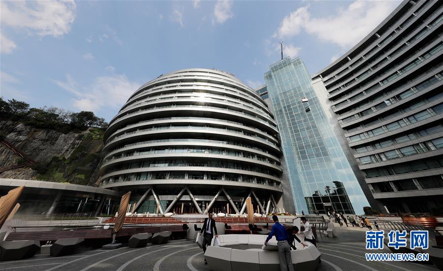 2018年10月13日,河南鄭州,龍子湖湖心島上的一棟在建大樓頂部設(shè)計為鏤空的框架結(jié)構(gòu),俯瞰酷似一顆巨大的花生。