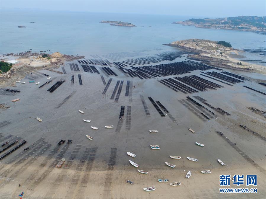 10月24日,福建莆田蔣山村村民在收獲紫菜?! ⌒氯A社記者張國俊 攝