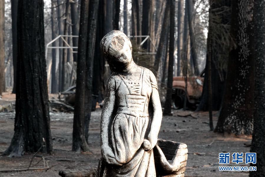 這是11月19日在美國(guó)加利福尼亞州比尤特縣天堂鎮(zhèn)拍攝的山火廢墟。新華社記者吳曉凌攝