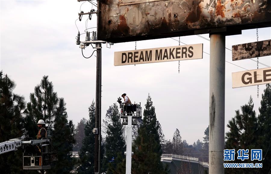 11月20日,在美國(guó)加利福尼亞州比尤特縣天堂鎮(zhèn),救援人員在災(zāi)區(qū)工作。