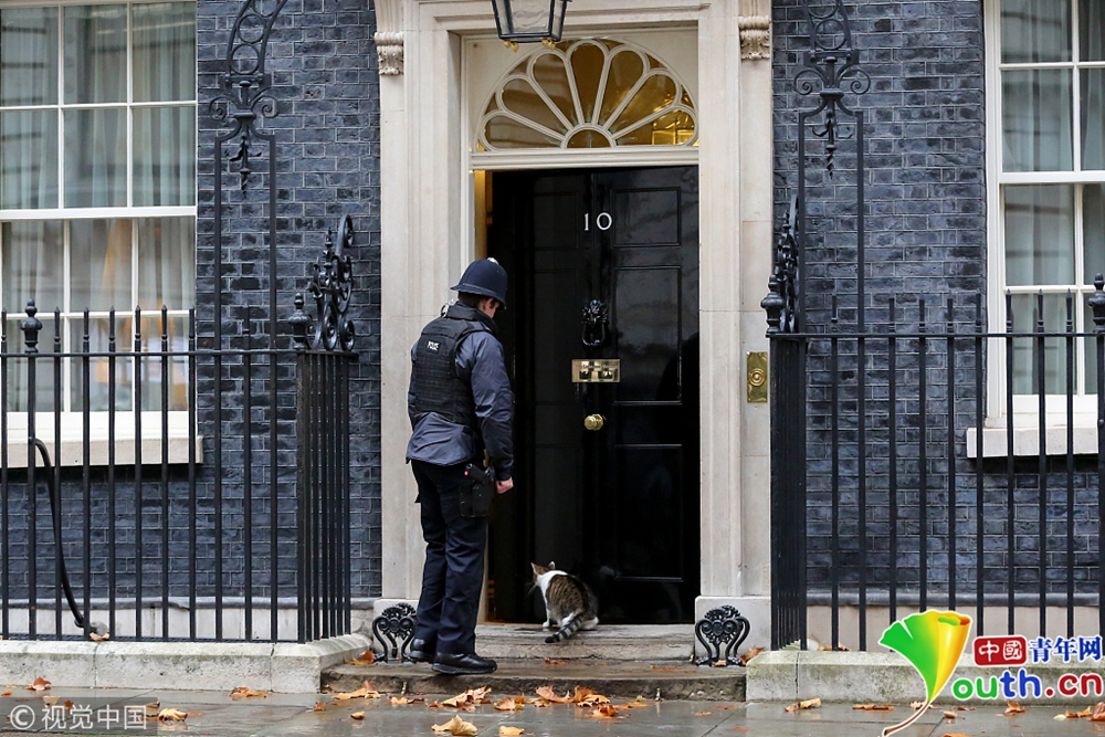 2018年11月22日訊,當(dāng)?shù)貢r(shí)間2018年11月20日,英國(guó)倫敦,在英國(guó)天空電視臺(tái)當(dāng)日就英“退歐”相關(guān)會(huì)議進(jìn)行直播報(bào)道時(shí),攝像機(jī)意外捕捉到了一副畫(huà)面:被關(guān)在門(mén)外的拉里起先“安靜且耐心地”蹲坐在唐寧街10號(hào)的黑色大門(mén)前,過(guò)了一會(huì)兒它淡淡地撇了一眼正在不遠(yuǎn)處執(zhí)勤的警察。后者顯然立馬接收到了“首席貓”的眼神示意,他快速走上前來(lái),替拉里敲開(kāi)門(mén),助它重返溫暖的室內(nèi)。據(jù)悉,唐寧街10號(hào)那扇赫赫有名的黑色大門(mén)只能由內(nèi)部打開(kāi)。