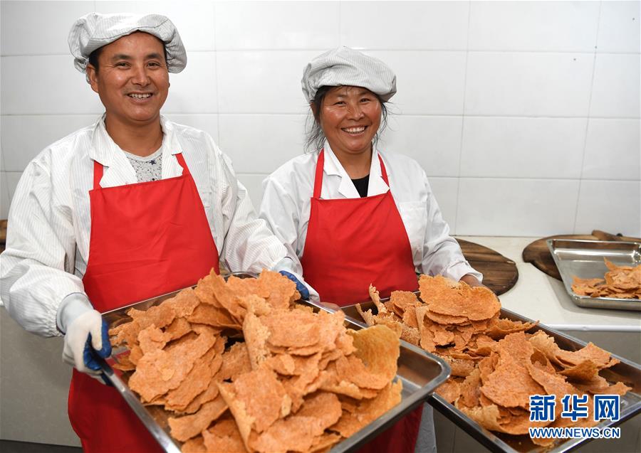 今年49歲的汪明祥和47歲的姚新花是安徽省涇縣黃村鎮(zhèn)沙元村的一對農(nóng)民夫妻。2013年,汪明祥突發(fā)疾病花光了家里的積蓄,并喪失了一定的勞動能力。2014年,汪明祥一家被確定為建檔立卡貧困戶。為了靠自己的雙手實(shí)現(xiàn)脫貧,汪明祥和妻子姚新花在家里開始生產(chǎn)手工鍋巴,雖然收入不高,但是經(jīng)濟(jì)狀況慢慢好轉(zhuǎn)起來,于2016年順利實(shí)現(xiàn)脫貧。脫貧后的夫妻倆開始琢磨如何進(jìn)一步發(fā)展自家的手工鍋巴生意。今年,汪明祥和妻子姚新花利用當(dāng)?shù)胤鲐毿☆~貸款和自籌資金創(chuàng)辦的強(qiáng)源鍋巴廠投產(chǎn)。由于口味地道,價(jià)格不高,汪明祥家的鍋巴受到市場的歡迎,平均每天生產(chǎn)鍋巴50余斤,日均銷售額400多元?!安坏炔豢?,甩窮帽,我們夫妻倆靠手藝脫了貧,也有信心實(shí)現(xiàn)致富?!蓖裘飨檎f。