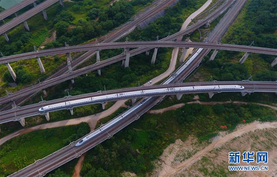 動(dòng)車(chē)行駛在廣西南寧市屯里特大橋上(7月1日無(wú)人機(jī)拍攝)。 廣西壯族自治區(qū)成立60年來(lái),鐵路建設(shè)發(fā)生翻天覆地的變化。來(lái)自中國(guó)鐵路南寧局集團(tuán)有限公司的數(shù)據(jù)顯示,1958年廣西鐵路總里程為1346.3公里,如今廣西鐵路總里程達(dá)5191公里。廣西與周邊相鄰省份間實(shí)現(xiàn)動(dòng)車(chē)“公交化”開(kāi)行。此外,北部灣港—重慶班列、東盟海產(chǎn)品冷鏈班列、“百色一號(hào)”果蔬專(zhuān)列等的開(kāi)通和運(yùn)營(yíng),強(qiáng)化了鐵路供給的針對(duì)性和有效性。鐵路成為助推廣西經(jīng)濟(jì)社會(huì)快速發(fā)展的“大動(dòng)脈”。 新華社記者黃孝邦攝