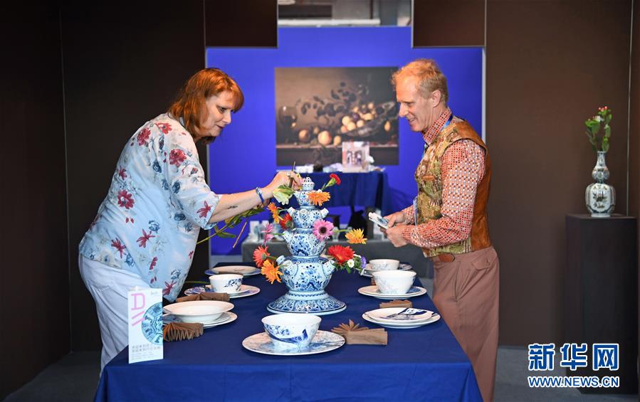 在中國景德鎮(zhèn)國際陶瓷博覽會的現(xiàn)場,來自荷蘭的參展商正在布置展臺(10月18日攝)。 新華社記者 萬象 攝