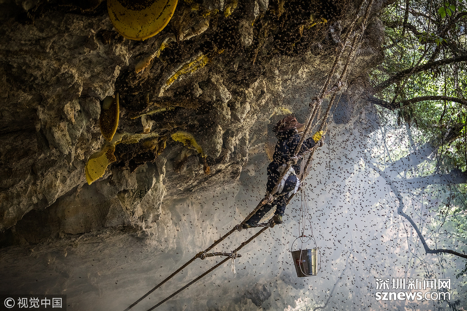 “最難采摘的崖蜜,是凹進懸崖內(nèi)側(cè)3至5米的那種?!眱赡陙?,小蕊親自跟采了十幾趟蜜,最怕遇到凹陷的蜜源。