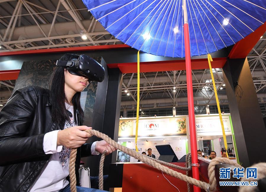 11月23日,觀眾正在操作3D虛擬文物的互動展示。新華社記者李賀攝