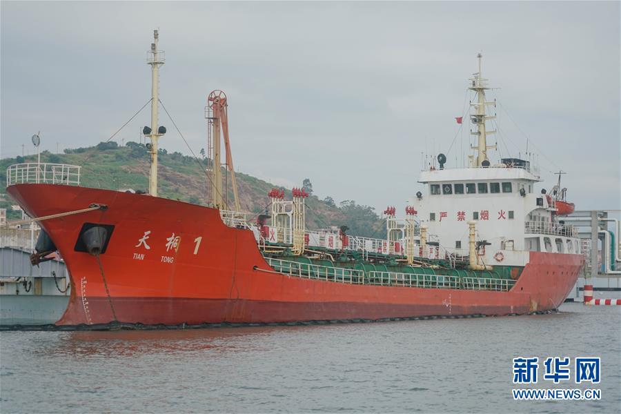 這是??吭跂|港石化碼頭正在接受調(diào)查的涉事船只“天桐1號(hào)”(11月6日攝)。新華社記者 宋為偉 攝