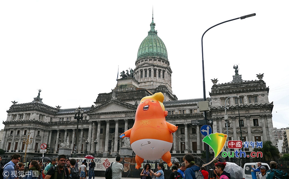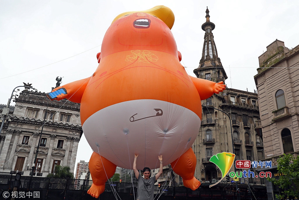 當(dāng)?shù)貢r間2018年11月29日,阿根廷布宜諾斯艾利斯,“特朗普寶寶”現(xiàn)身。11月30日至12月1日,二十國集團(tuán)(G20)領(lǐng)導(dǎo)人第十三次峰會將在阿根廷首都布宜諾斯艾利斯舉行。
