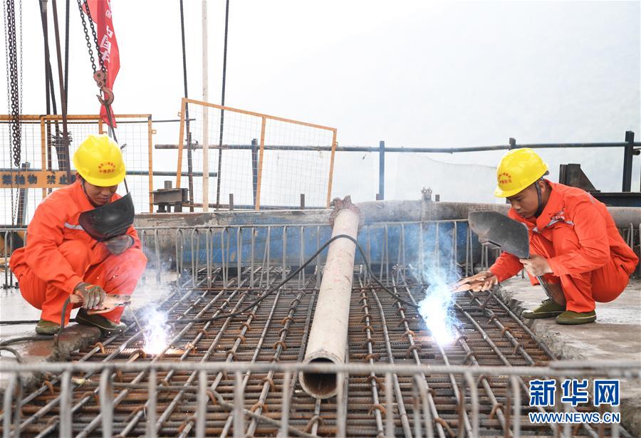 10月23日,在重慶涪陵,施工人員在渝懷鐵路涪秀二線重點工程——烏江右線大橋主跨合龍現(xiàn)場作業(yè)。 當日,由中鐵四局承建的渝懷鐵路涪秀二線重點工程——烏江右線大橋主跨成功合龍,標志著大橋主體工程全部順利結(jié)束。烏江右線大橋項目全程460.1米,主跨192米,跨越烏江和319國道。在兩年多的建設過程中,施工人員攻克了“不等高墩”“不對稱邊跨”“邊跨入隧”等多個技術(shù)難題。 新華社記者王全超攝