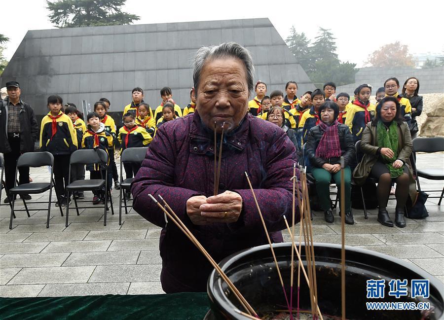 12月3日,南京大屠殺幸存者石秀英焚香祭奠被侵華日軍殺害的親人。 當(dāng)日,在第五個(gè)南京大屠殺死難者國家公祭日到來之際,南京大屠殺死難者遺屬家祭活動(dòng)在侵華日軍南京大屠殺遇難同胞紀(jì)念館正式啟動(dòng)。首批前來開展家祭活動(dòng)的南京大屠殺幸存者余昌祥、石秀英老人分別率家屬在紀(jì)念館內(nèi)的死難者名單墻前獻(xiàn)花、敬香、跪拜,并誦讀家信,表達(dá)對親人的哀思。 新華社記者 孫參 攝