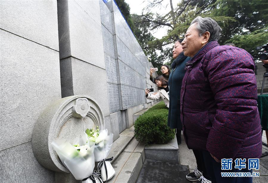 12月3日,南京大屠殺幸存者石秀英(右)率家屬在死難者名單墻前憑吊被侵華日軍殺害的親人。 當(dāng)日,在第五個(gè)南京大屠殺死難者國(guó)家公祭日到來(lái)之際,南京大屠殺死難者遺屬家祭活動(dòng)在侵華日軍南京大屠殺遇難同胞紀(jì)念館正式啟動(dòng)。首批前來(lái)開展家祭活動(dòng)的南京大屠殺幸存者余昌祥、石秀英老人分別率家屬在紀(jì)念館內(nèi)的死難者名單墻前獻(xiàn)花、敬香、跪拜,并誦讀家信,表達(dá)對(duì)親人的哀思。 新華社記者 孫參 攝