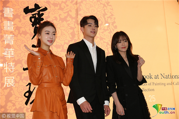 10月31日,臺北,《延禧攻略》主要演員秦嵐、吳謹言、許凱參觀臺北故宮。吳謹言梳高馬尾辮,元氣滿滿比心超甜美。秦嵐穿黑色長裙氣質(zhì)非凡,親切揮手顯優(yōu)雅,可以說是“富察皇后”本人了,與吳謹言牽手秀友誼惹人羨慕。