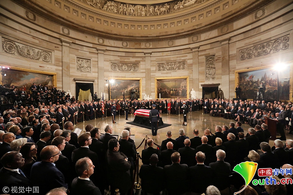 當?shù)貢r間2018年12月3日,美國前總統(tǒng)老布什的靈柩送抵美國國會大廈,正式的追悼儀式就此開始。