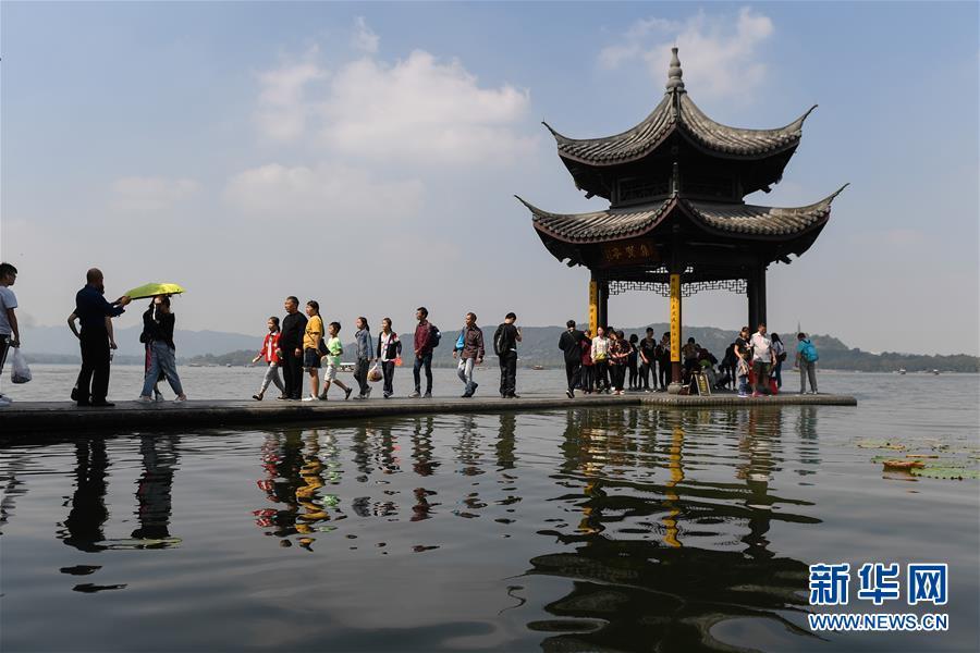 10月7日,游客在杭州西湖風(fēng)景區(qū)集賢亭游覽。當(dāng)日是國(guó)慶黃金周最后一天,眾多游客來(lái)到杭州西湖景區(qū)觀光游覽,熱度不減。據(jù)杭州市旅游委員會(huì)公布的數(shù)據(jù)顯示,從10月1日起截至10月7日12時(shí),國(guó)慶七天杭州市各景區(qū)(點(diǎn))接待游客總量達(dá)到1776.14萬(wàn)人次,其中西湖風(fēng)景名勝區(qū)管委會(huì)所屬公園景點(diǎn)共接待游客452.2萬(wàn)人次。新華社記者 黃宗治 攝