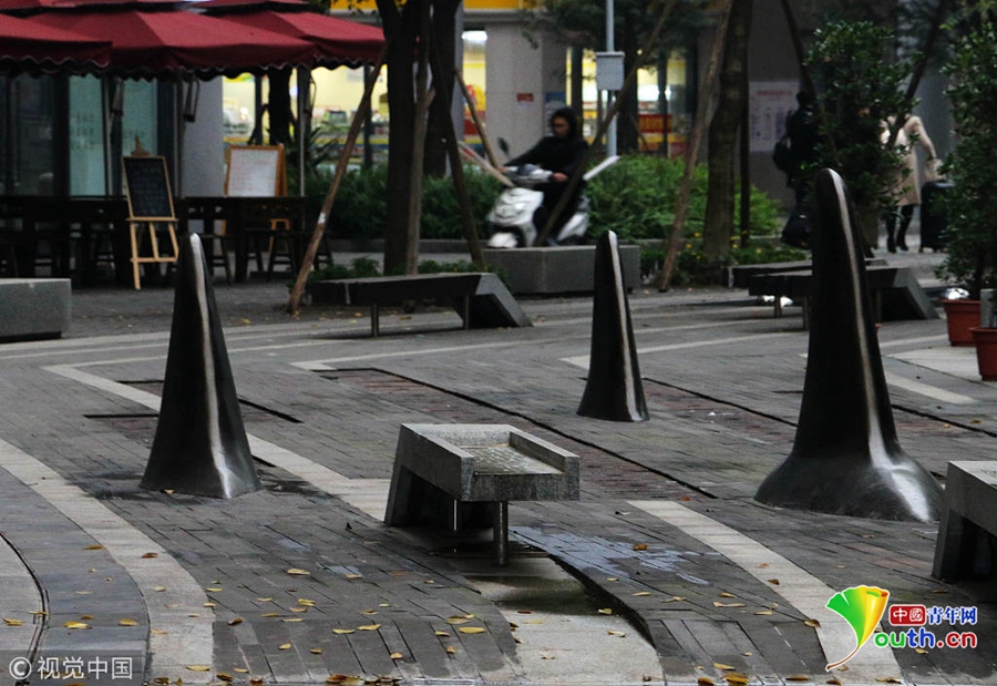 對(duì)于這種設(shè)計(jì),不少市民覺(jué)得比較精巧的,遠(yuǎn)遠(yuǎn)地望去,就好像在海面上露出魚(yú)鰭的一群鯊魚(yú),不僅可以防止被車(chē)輛占道,而且還有點(diǎn)裝飾的效果。