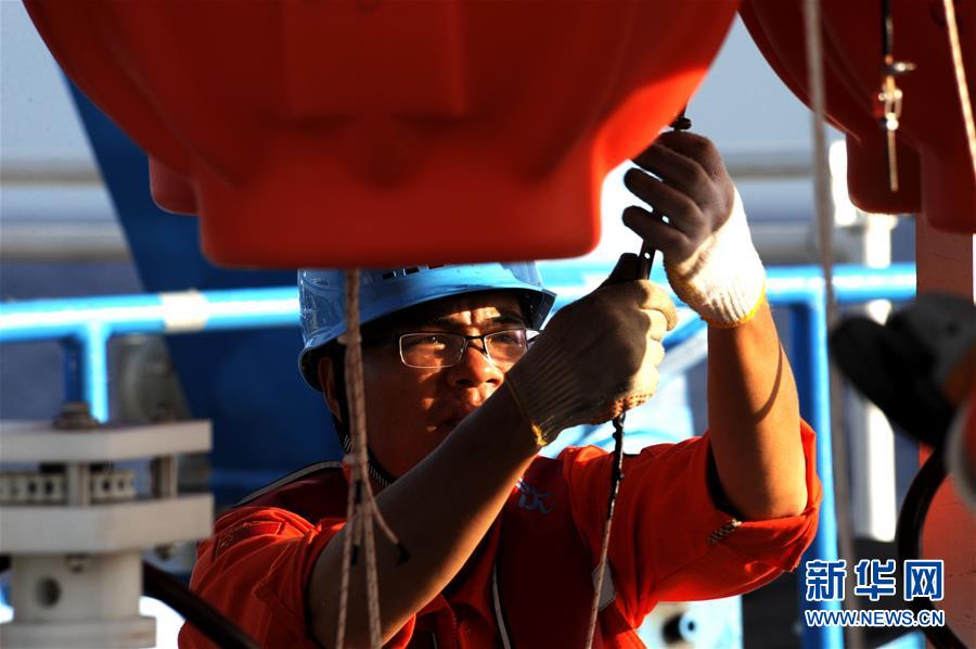 考察隊員在布放“彩虹魚”著陸器前進(jìn)行檢查工作(12月10日攝)。 由上海海洋大學(xué)和西湖大學(xué)聯(lián)合組成的“彩虹魚”科考團隊,12月11日在全球最深的海溝——馬里亞納海溝成功完成兩臺“彩虹魚”第二代著陸器的萬米級海試,深度分別為10918米和10899米。 新華社記者 張建松 攝