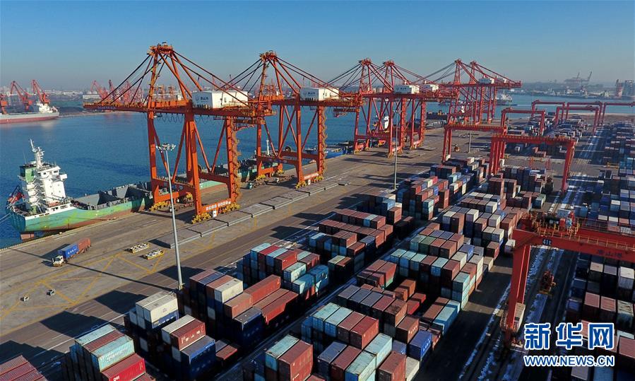 這是唐山港京唐港區(qū)集裝箱碼頭(12月13日無人機(jī)拍攝)。 記者從河北省交通運(yùn)輸廳獲悉,2018年1至11月,河北省港口貨物吞吐量完成10.5億噸,為年度計劃的104%,同比增長5.1%,位居全國沿海省份第四位。 新華社記者楊世堯攝