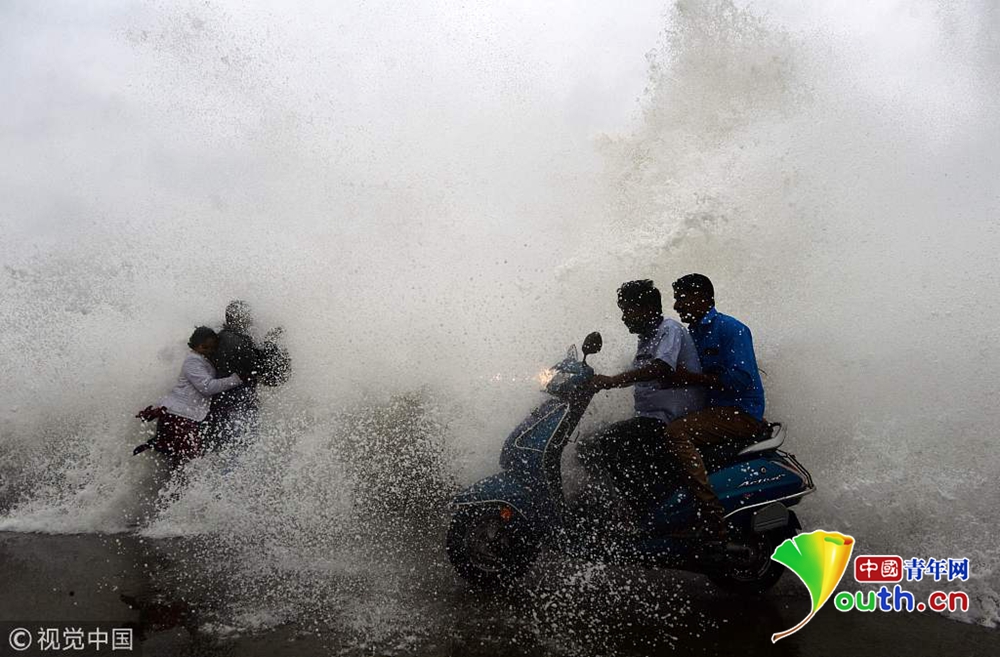 當(dāng)?shù)貢r(shí)間2018年12月16日,印度欽奈,颶風(fēng)“佩太”正向印度東海岸逼近,引發(fā)狂風(fēng)巨浪。