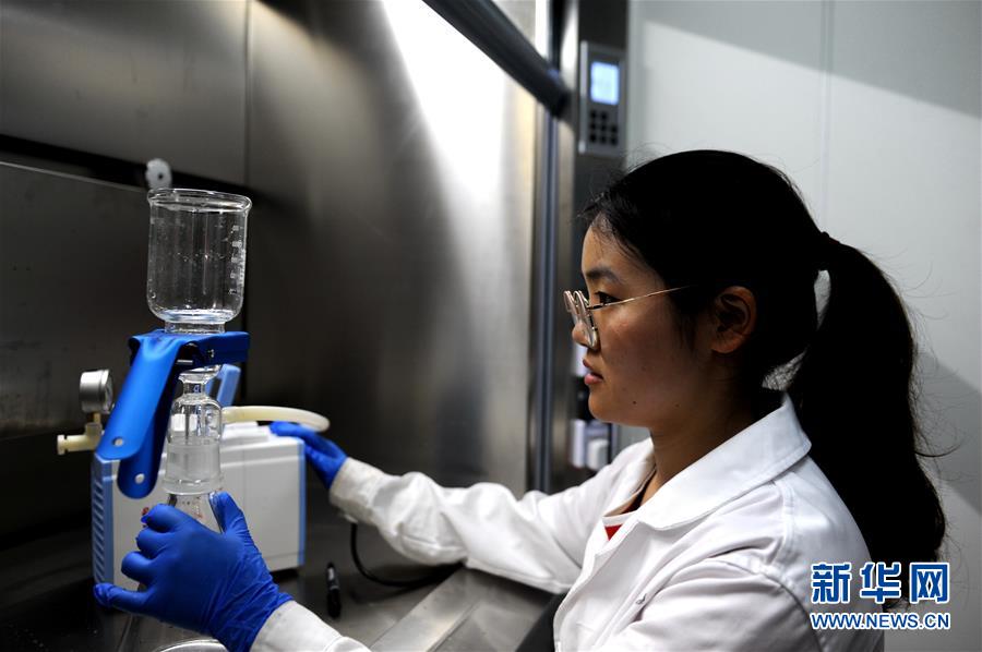 12月18日,來自上海海洋大學的女隊員劉艷在“沈括”號實驗室工作。  新華社記者 張建松 攝